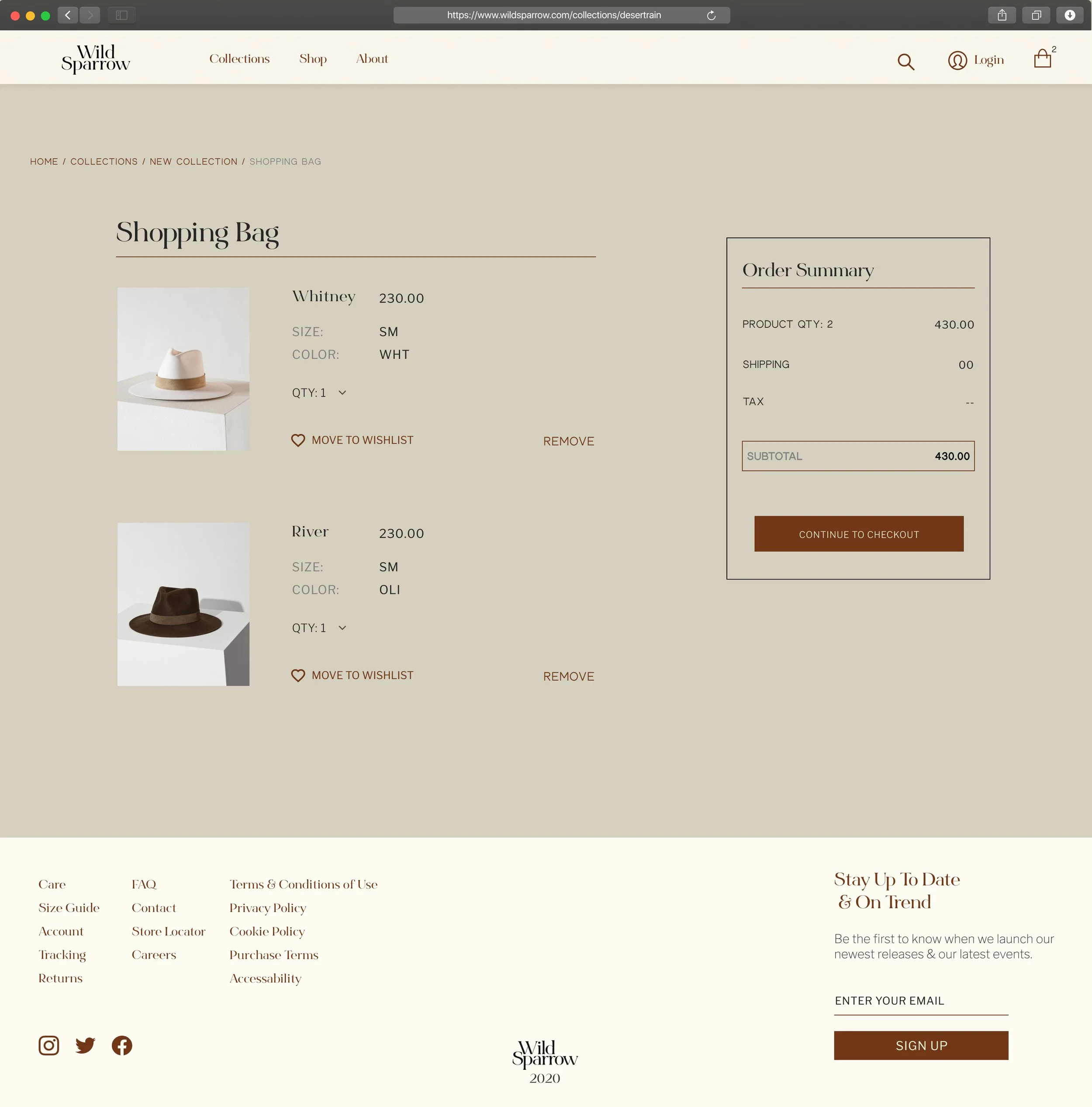 A chic, fashion forward brand and website that looks and feels elevated in it’s visuals and interactions while providing a pleasant, and easy to navigate experience.
